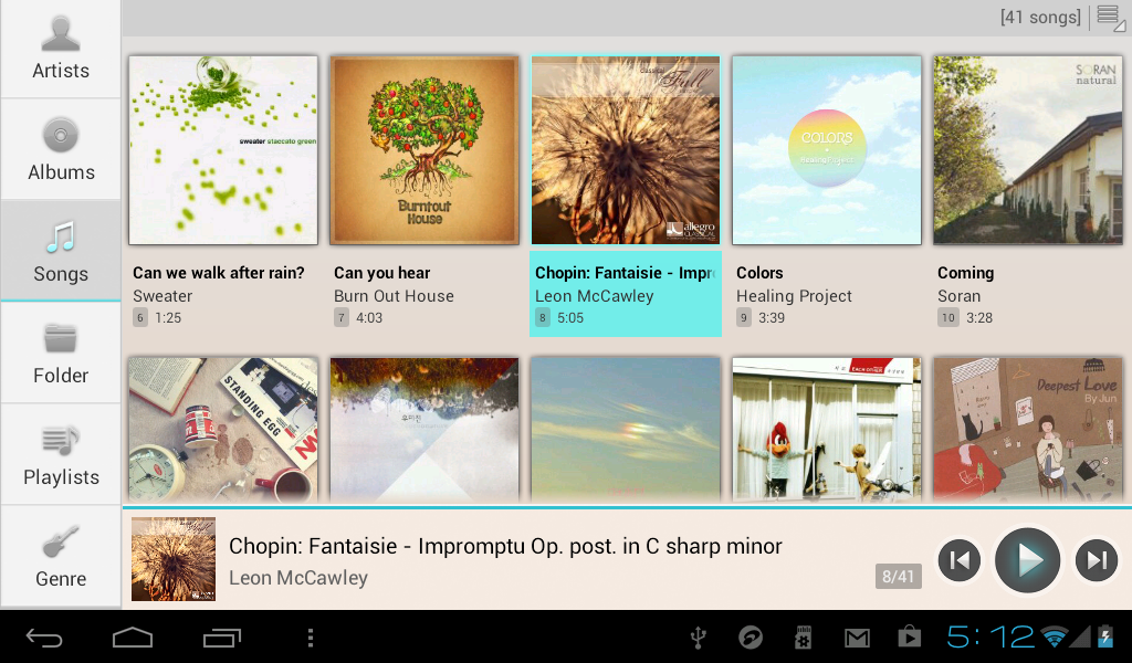 * Browser and play music by artits, albums, songs, playlists, genres and folders